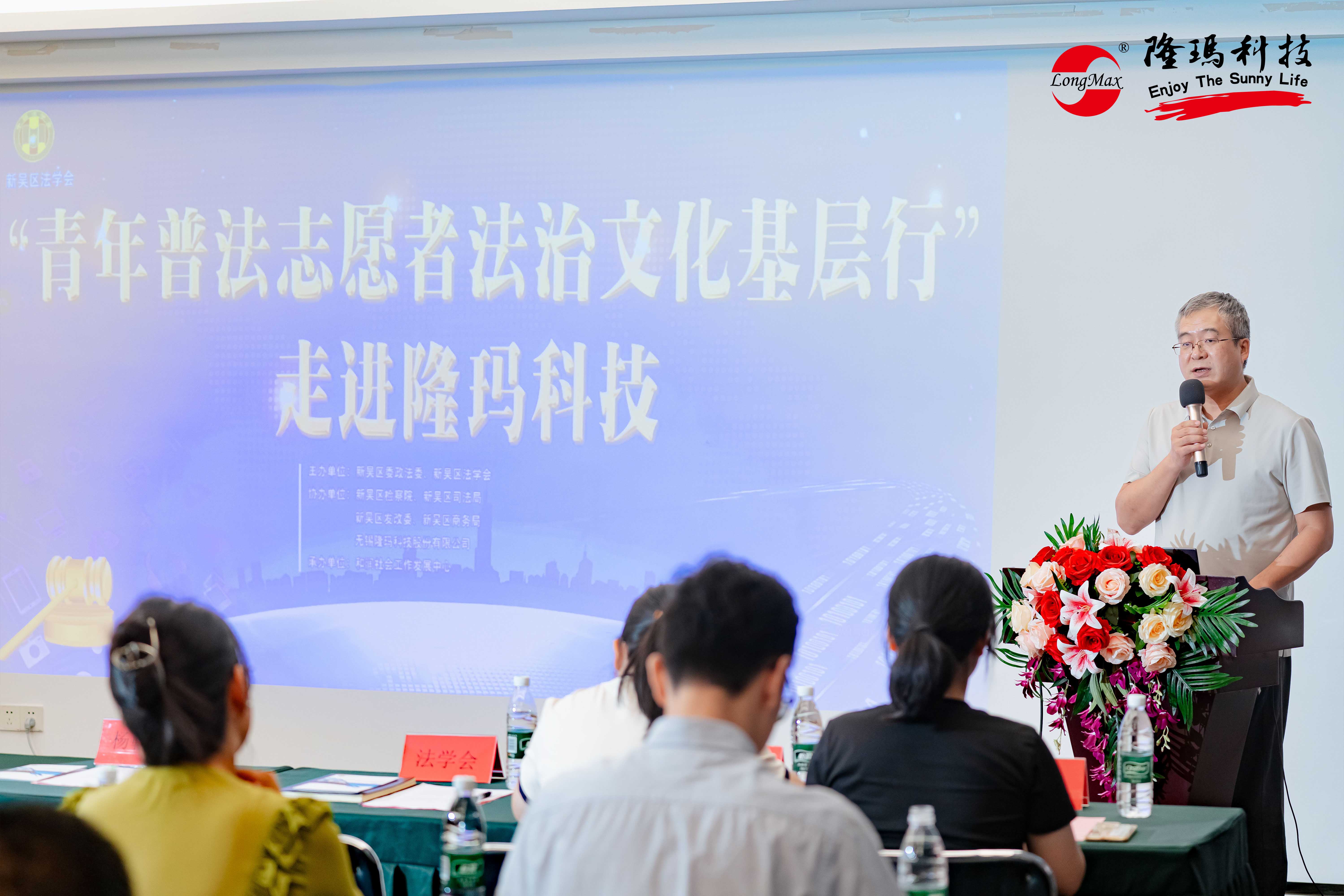 隆瑪科技董事長楊朝輝在致辭中表示:“依法治企是企業可持續發展的根基。本次培訓不僅是普法教育,更是隆瑪全球化戰略實施的關鍵一環。我們期待以此次活動為起點,與政法機關、法律專家建立長期聯絡機制,持續完善企業合規體系。”他代表公司對與會領導、專家和嘉賓表示熱烈歡迎與衷心感謝,并強調,隆瑪科技作為新能源領域的高新技術企業,始終秉持“共同發展、合作共贏”的理念,在持續推進國際化布局的過程中,高度重視法治環境的建設,尤其在內部治理、職務犯罪預防與跨境合規等領域,亟需法律的指引與保障。